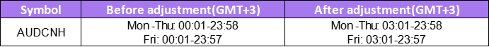 1. The trading hours indicated in the table are in GMT+3 (MT4Server Time).