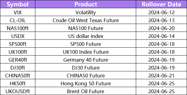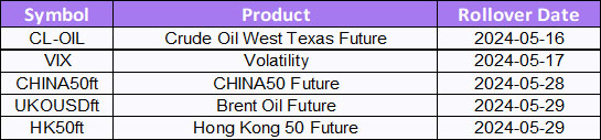 2.Positions that are open on the expiration date will be adjusted via a rollover charge or credit to reflect the price difference between the expiring and new contracts.