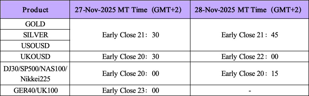 Please be advised that the trading hours for the products listed below will be affected by the upcoming Thanksgiving holiday on 27 November 2025. To ensure a smooth trading experience, kindly review the information carefully and make appropriate arrangements.